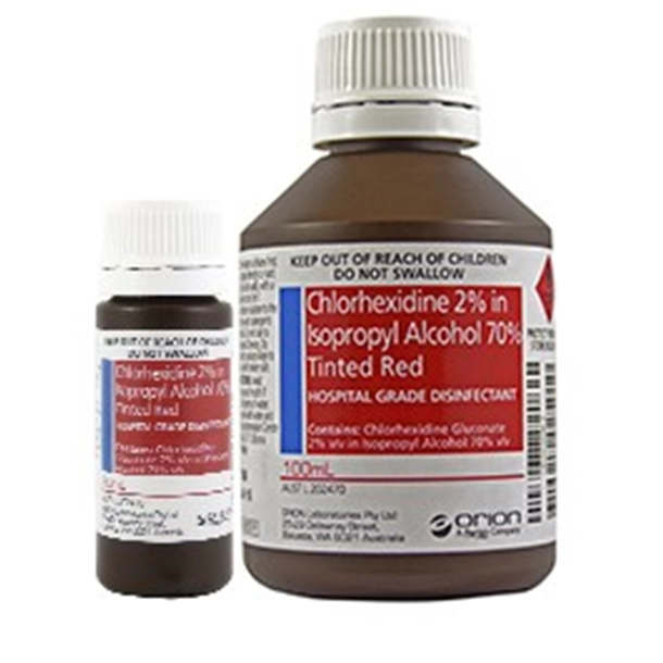 Chlorhexidine 2% in Isopropyl Alcohol 70% Tinted Red Antiseptic Solution 20 x 100ml