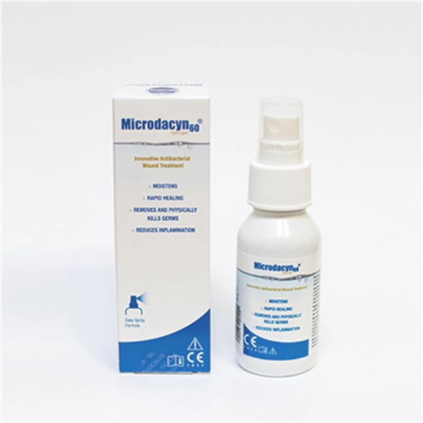 Applying Microdacyn to wounds such as diabetic foot ulcers & venous leg ulcers has demonstrated an increase in transcutaneous oxygen pressure (tcpO2). This local increase in pressure can be sustained for up to 72 hours after a single application providing greater oxygen to the wound to aid the bodies natural healing process.