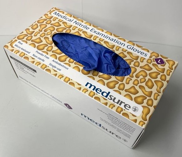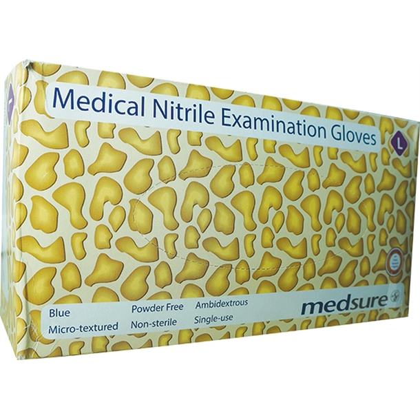 Medsure Nitrile Exam Gloves Blue Large P/F. Box of 200