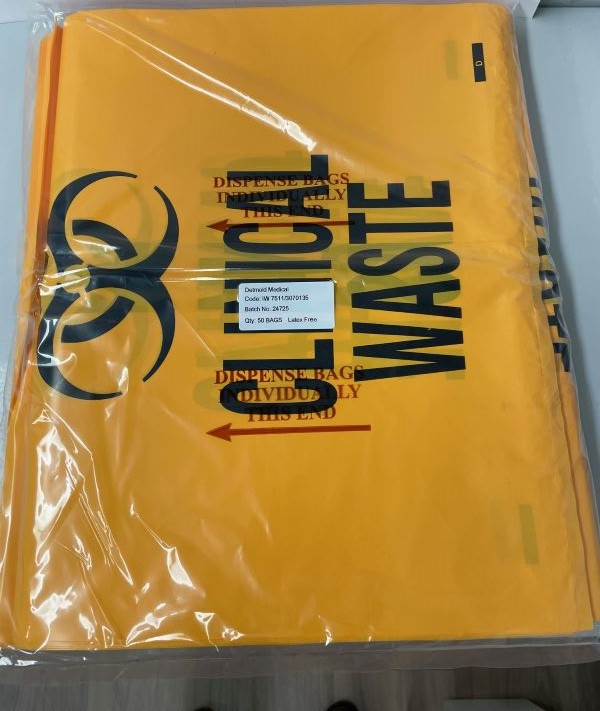 Contaminated Waste Bag 1000mm x 760mm x 60um - 60L Gussetted Yellow. Pack of 50