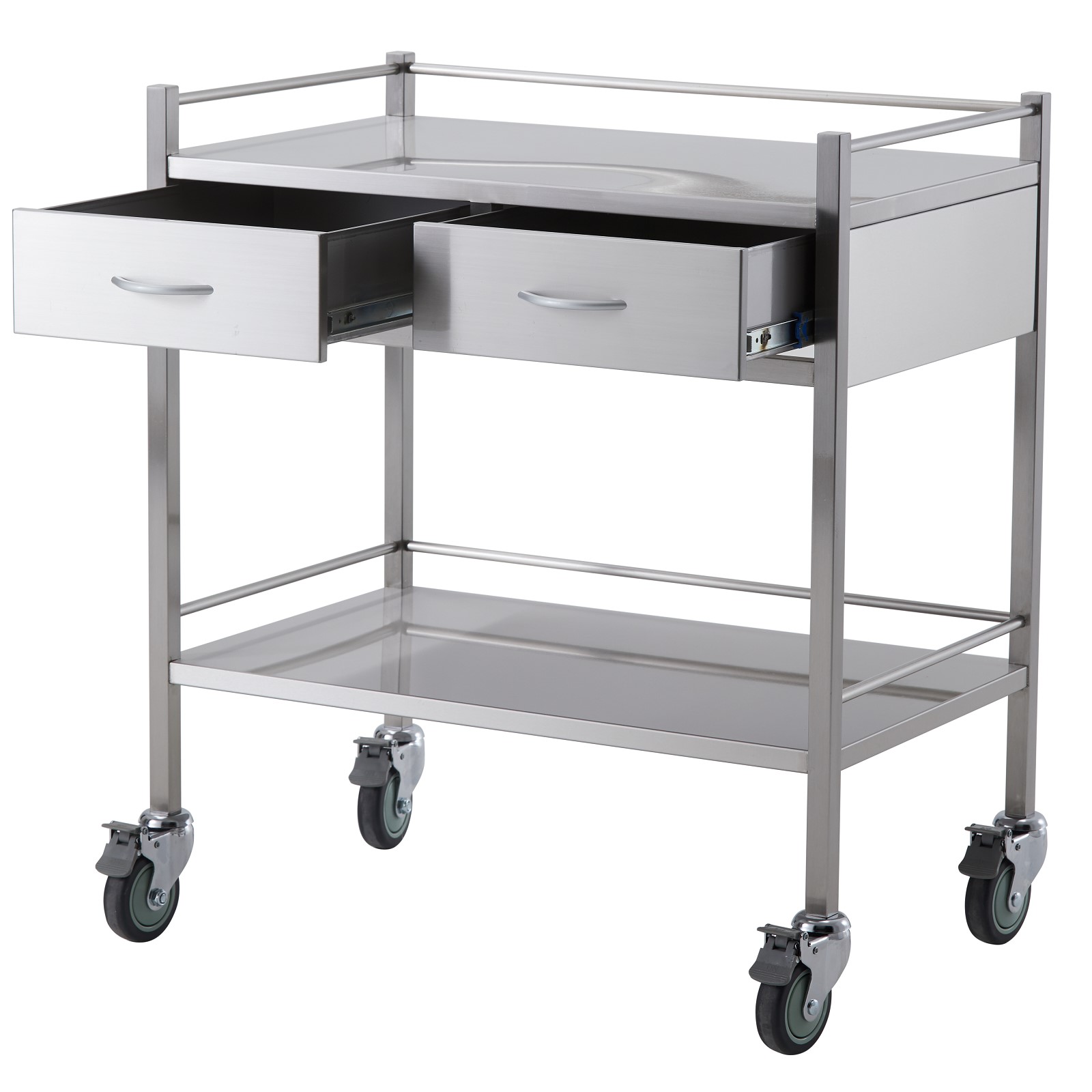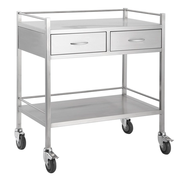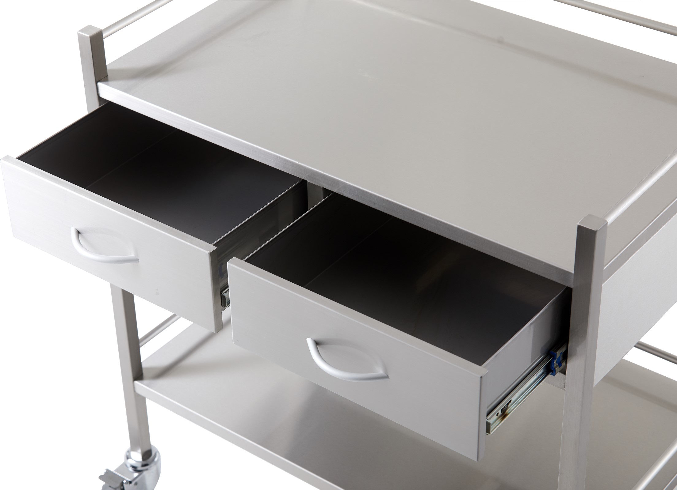 Instrument Trolley Stainless Steel 490mm x 800mm x 900mm with 2 Drawers Side by Side